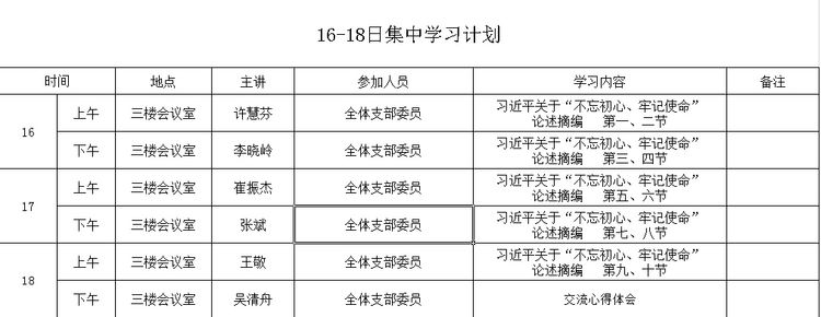 根據集團第二次集中學習要求,恒質公司于10月16日至10月19日開展“不忘初心牢記使命”主題教育第二次集中學習研討。為組織好本輪集中學習,支部書記制定了詳細的學習計劃。此次學習由許慧芬書記主持,領導班子成員參加,以輪流授課方式進行。